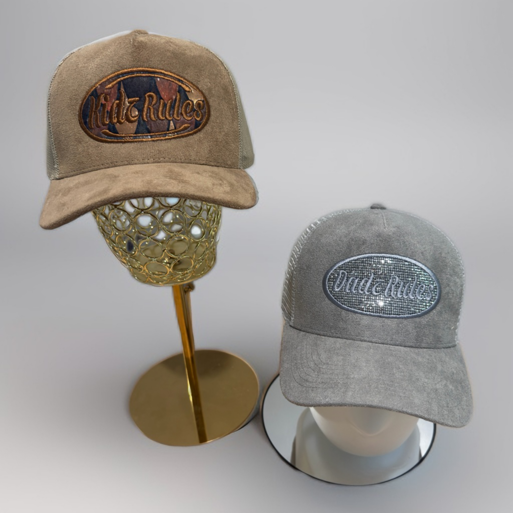 Upgrade your style game with Dadz and Kidz Rules! This glitter and gold suede hat adds a touch of sophistication to any outfit. Perfect for both dadz and kidz, this accessory is a must-have for those who want to stand out in the crowd.